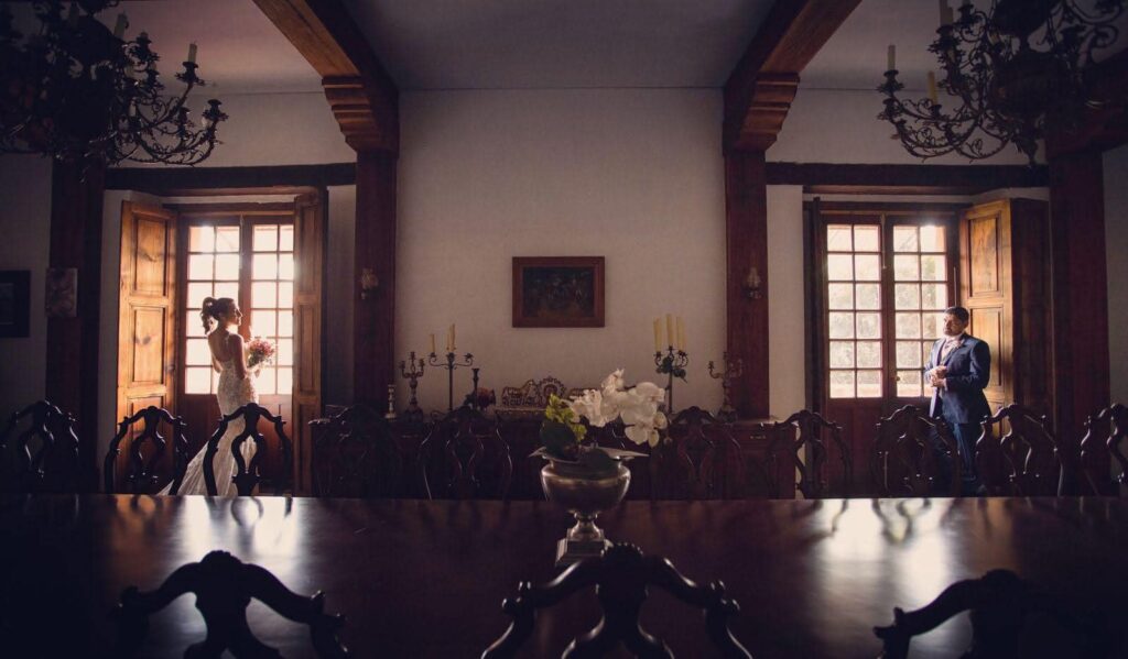 Cada rincón de la hacienda está diseñado para crear una atmósfera romántica y sofisticada: